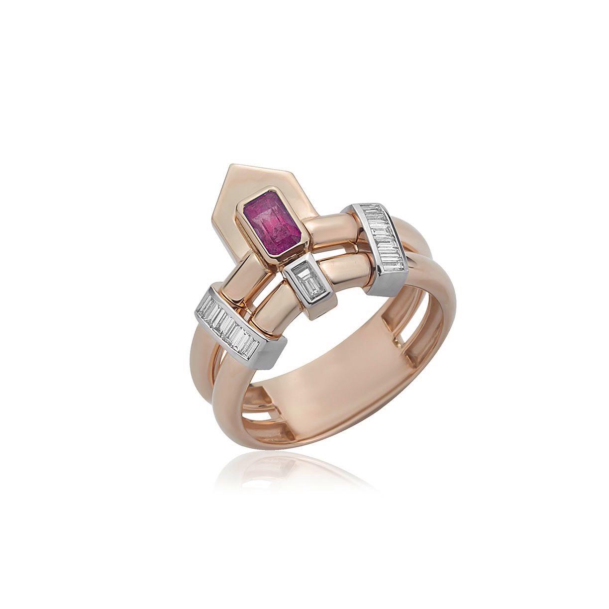 14K Gold 0,24 Baguette Ct Diamond 0,30 Ct Ruby