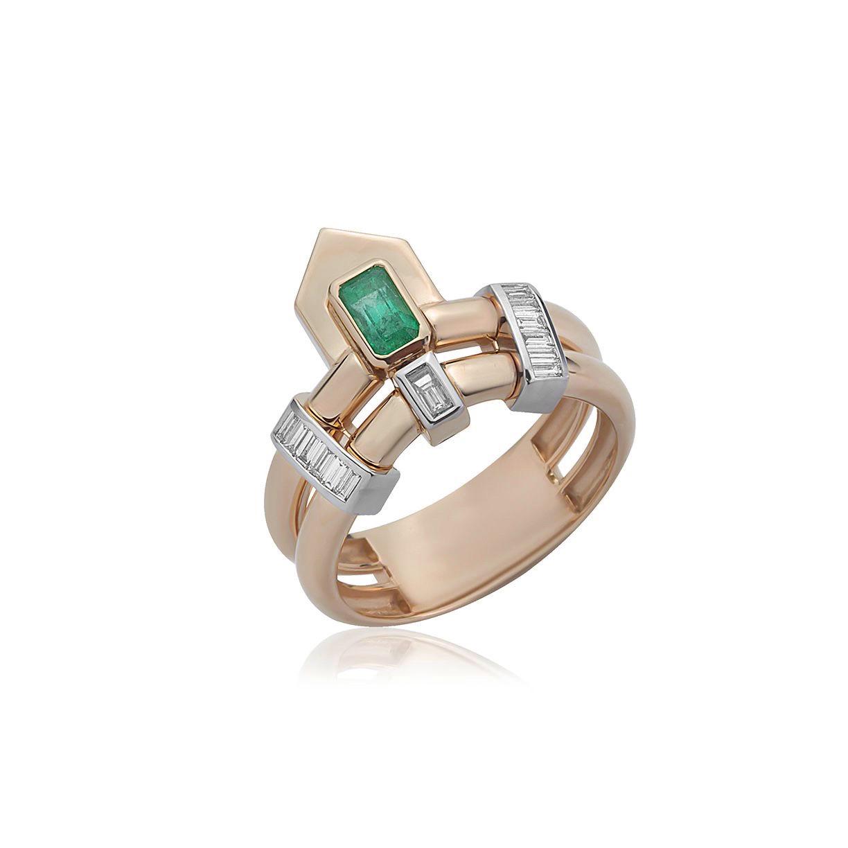 14 Ayar Altın 0,24 Ct Baget Kesim Pırlanta 0,30 Ct Zümrüt